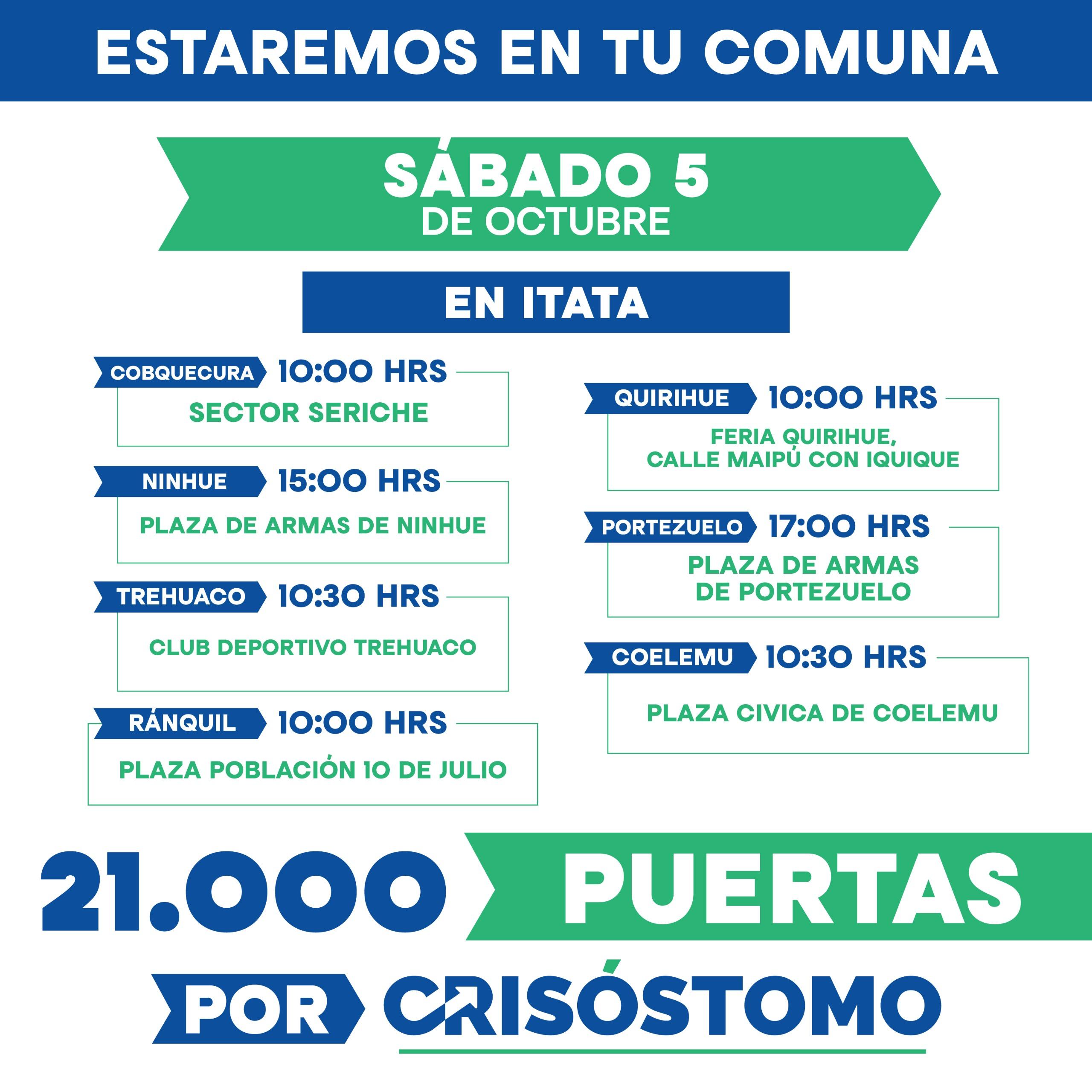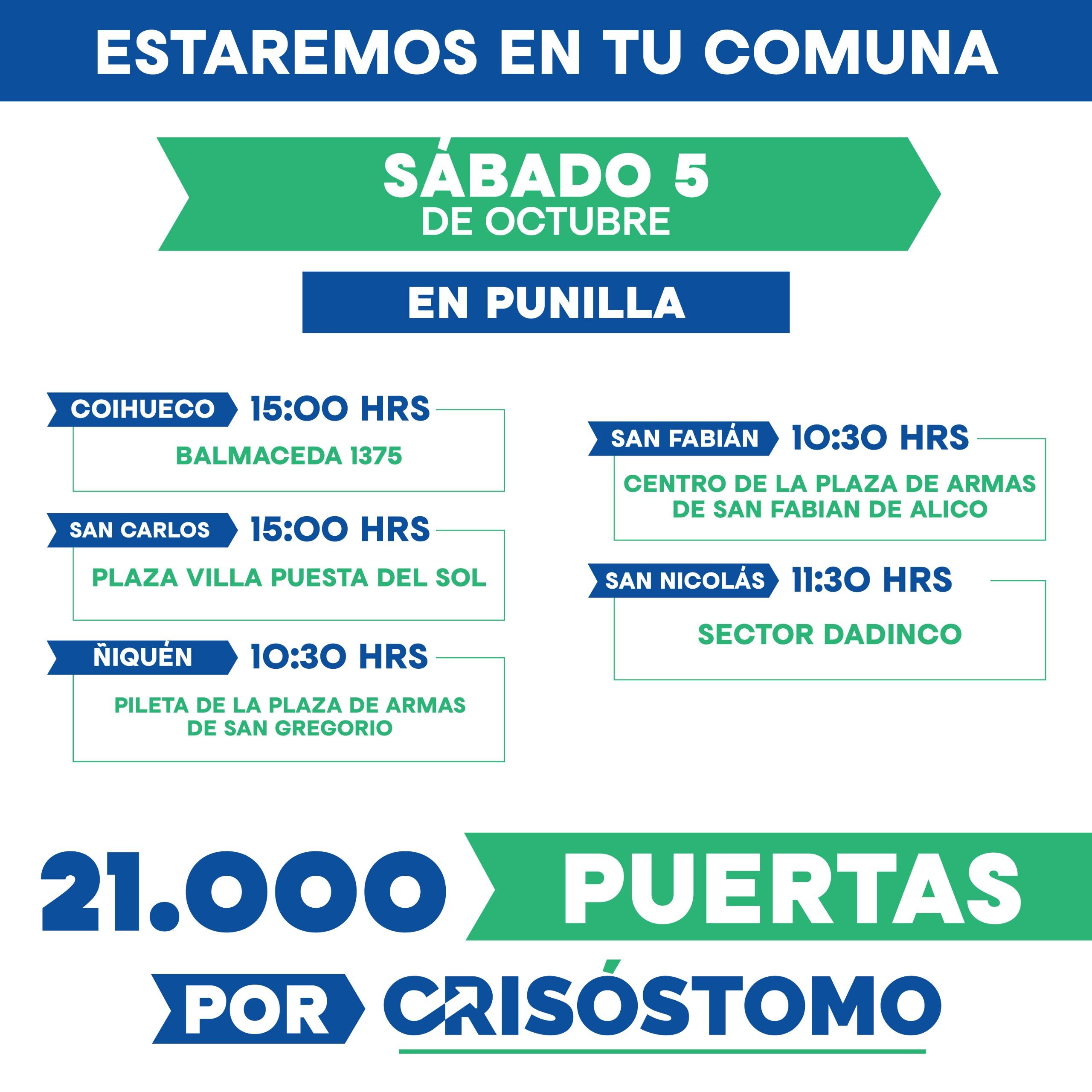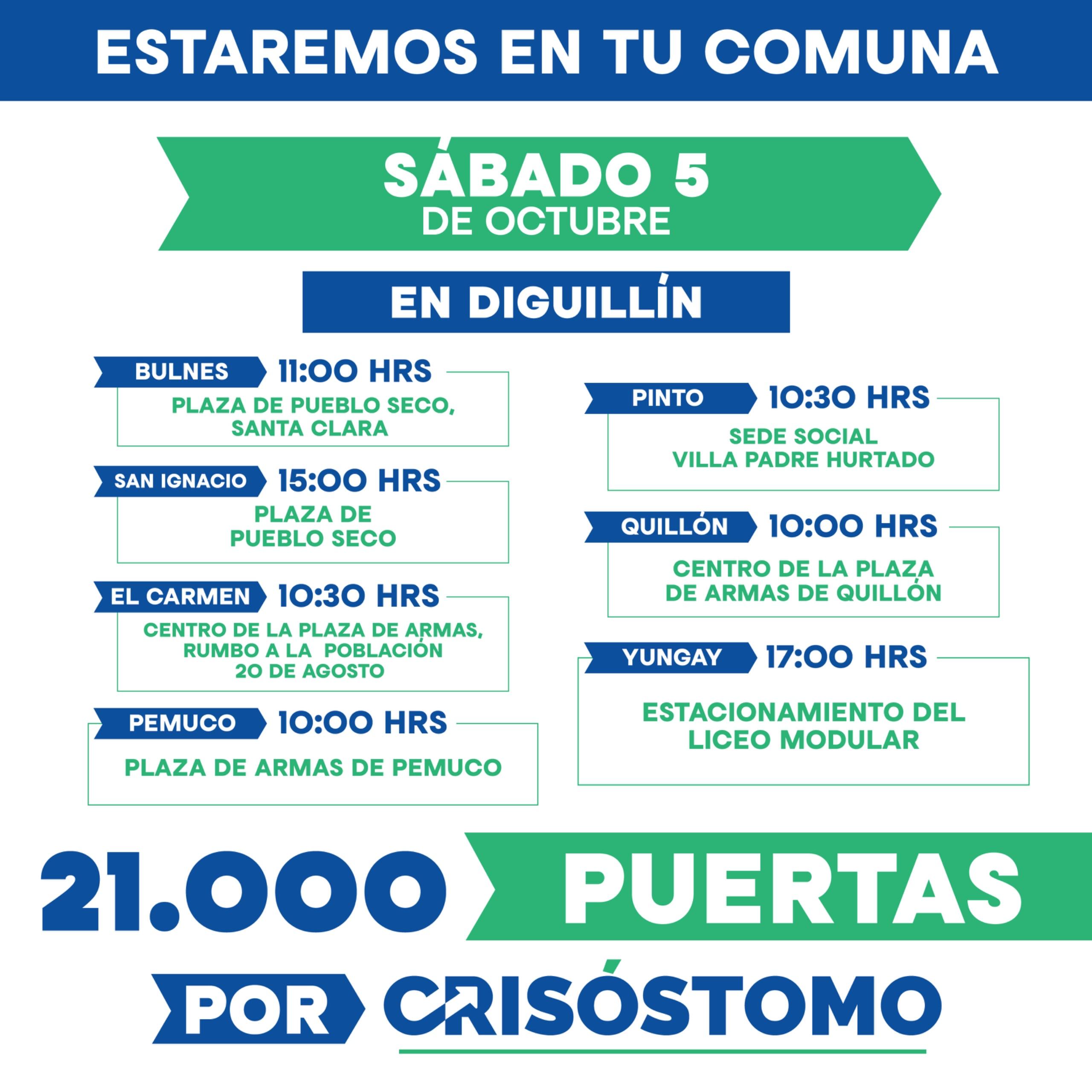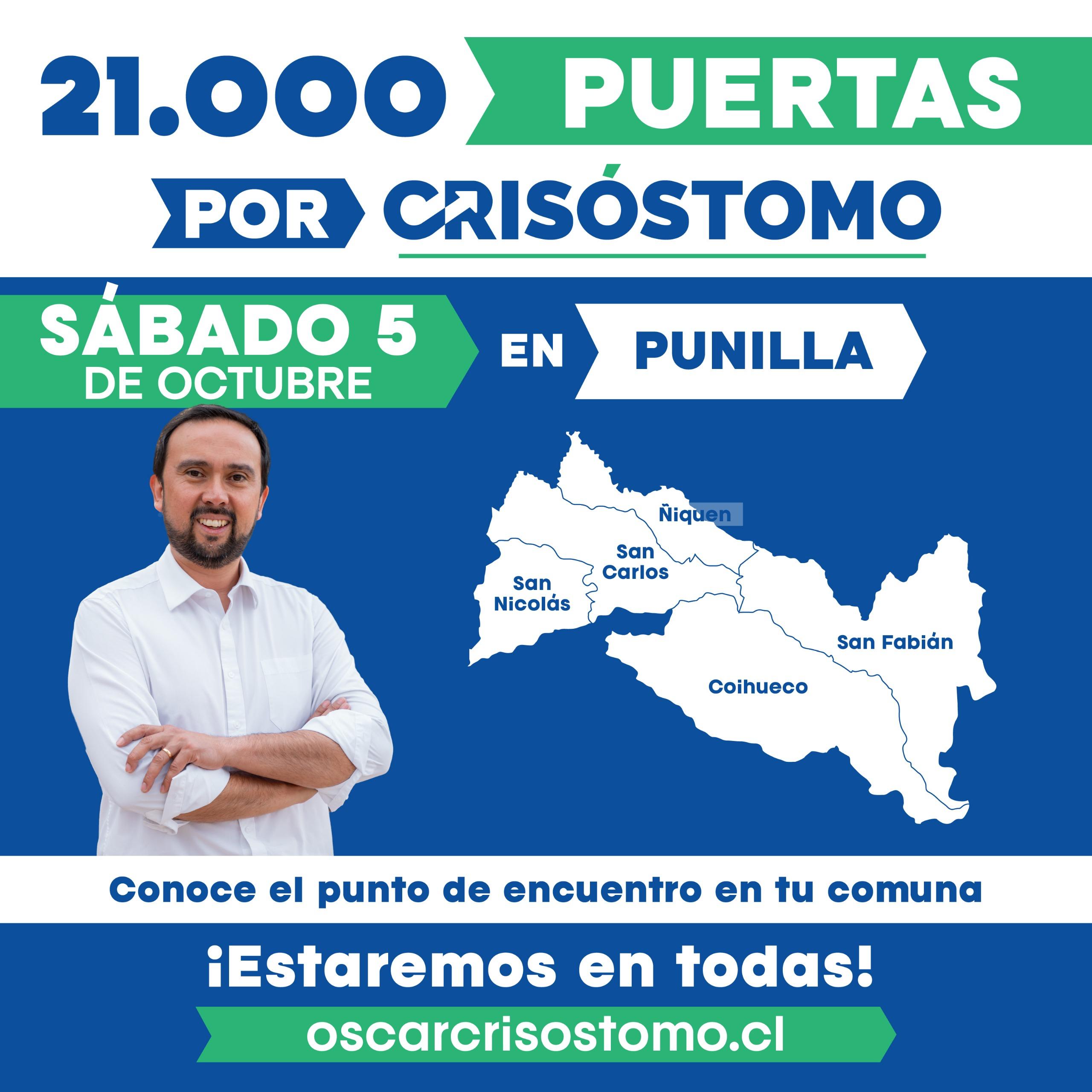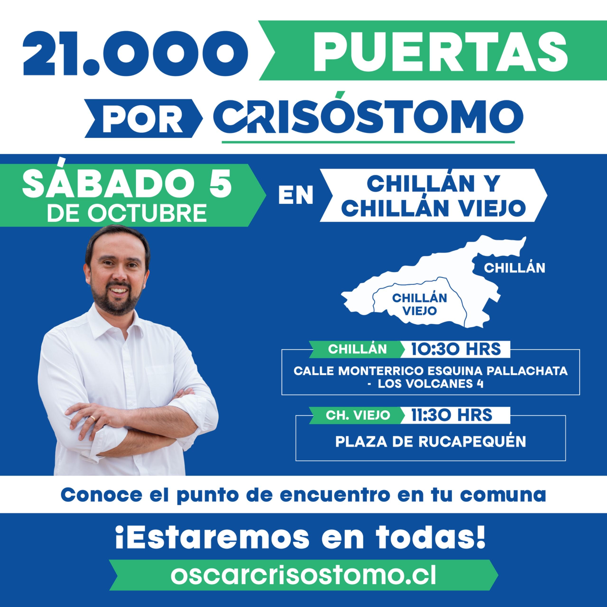 “Queremos agradecer el enorme apoyo que hemos recibido estos primeros días y responder también a todo el cariño que nos expresan en la calle y en cada actividad a la que asistimos”, señaló Óscar Crisóstomo, quien invitó a los vecinos y vecinas de Ñuble a abrir la puerta a los voluntarios y “sumarse este gran desafío que represento, que nos permitirá ganar y seguir trabajando por el desarrollo de Ñuble”.
